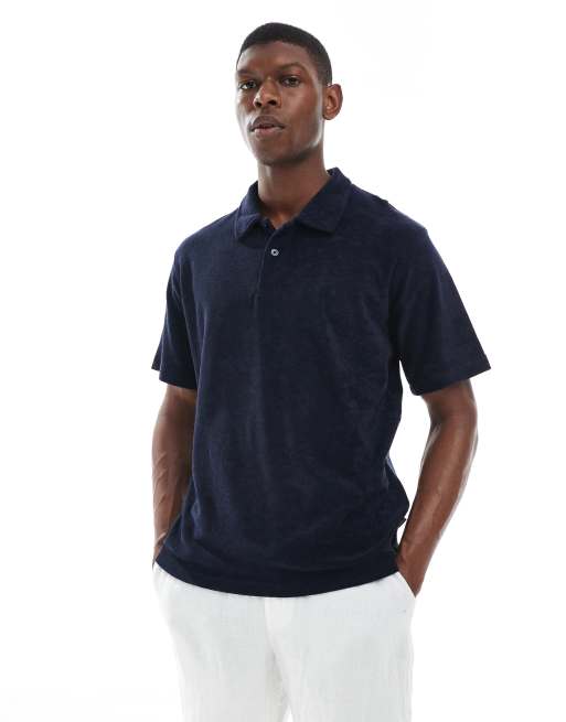Jack & Jones - Polo van badstof in marineblauw
