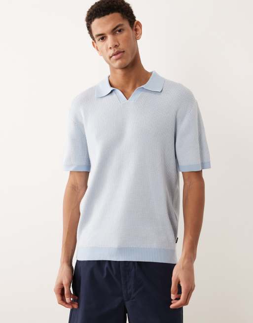Jack & Jones Premium - Gebreide top met split in de hals in lichtblauw