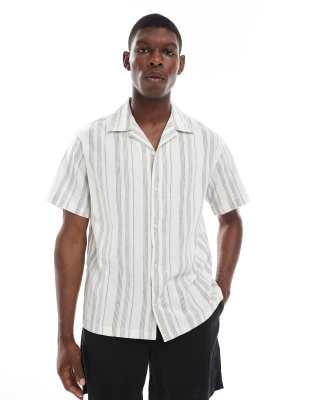 Jack & Jones Premium - Gestreept overhemd van linnenmix in wit