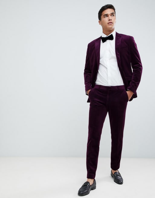 Jack & Jones - Premium slim-fit paars kostuum van fluweel