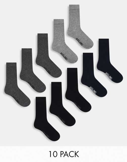 Jack & Jones - Set van 10 paar sokken in zwart en grijs
