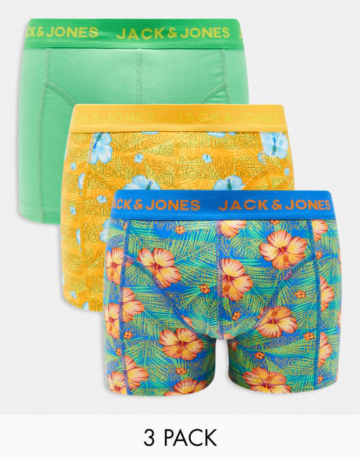 Jack & Jones - Set van 3 boxershorts met zomerse bloemenprint in blauw