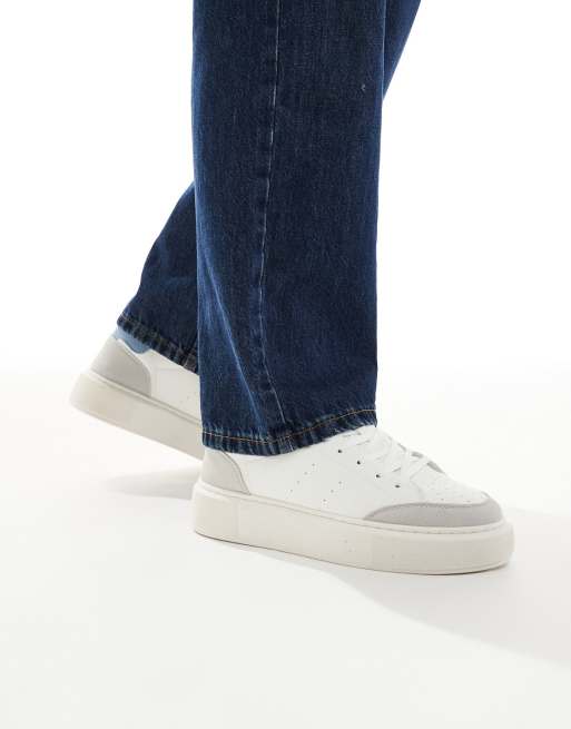 Jack & Jones - Sneakers van suèdemix in wit en blauw