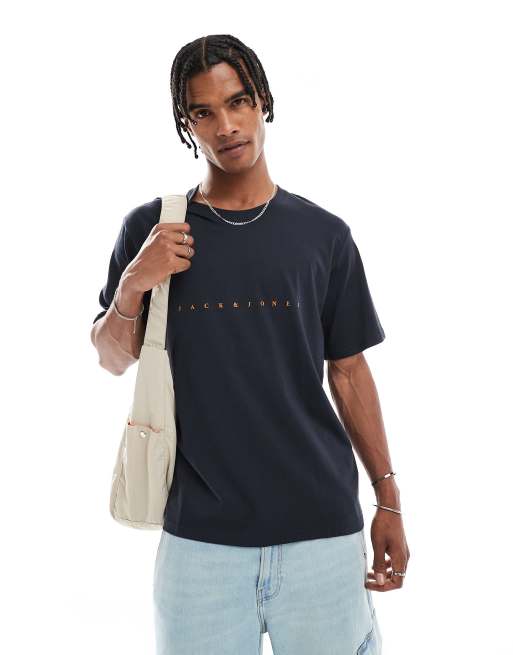 Jack & Jones - T-shirt met logo aan de voorkant in marineblauw