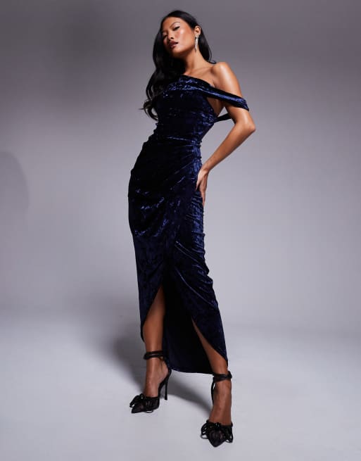 Jaded Rose Petite - Maxi-jurk van fluweel met blote schouder en textuur in nachtblauw