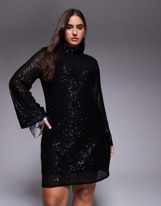 Jaded Rose - Plus - Hoogsluitende mini-jurk met gedrapeerde achterkant en lovertjes in zwart