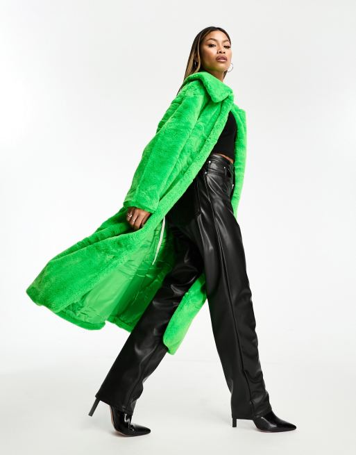 Jayley - Halflange jas met overslag van imitatiebont in felgroen