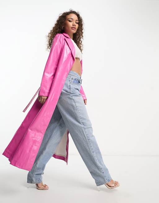 Jayley - Trenchcoat van imitatiesuède in felroze