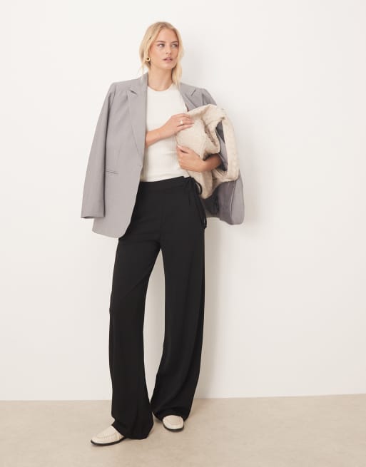 JDY Tall - Broek met wijde pijpen en strikdetail in zwart