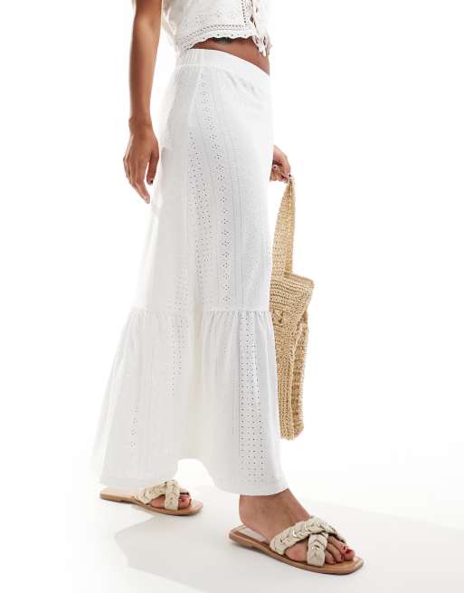 JDY - Ajourgebreide maxirok met stroken in gebroken wit