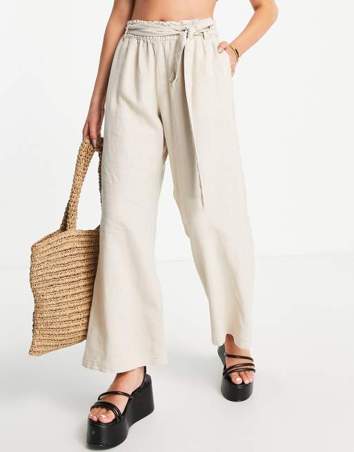 JDY - Broek van linnenmix met wijde pijpen en riem in beige, deel van co-ord set