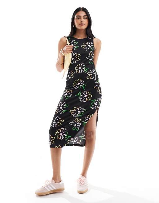 JDY - Exclusive - Midi jurk met zijsplit en bloemenprint in multi