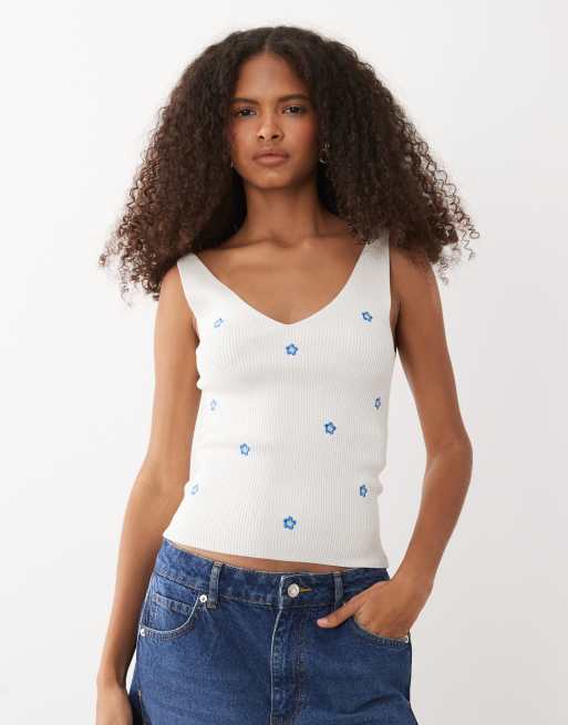 JDY - Gebreid hemd met geborduurde bloemetjes in wit
