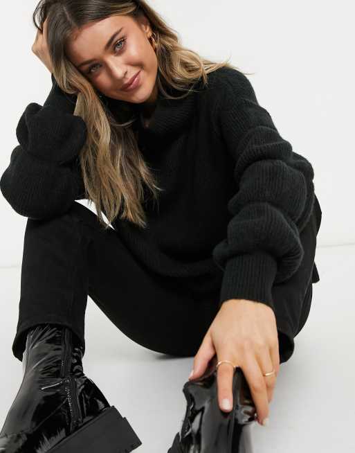 JDY - Gebreide trui met bubbelmouwen in zwart