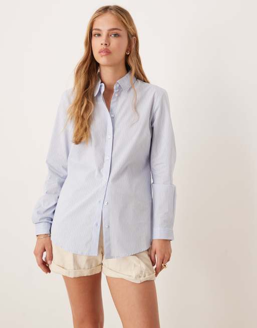 JDY - Gestreept overhemd met lange mouwen in lichtblauw
