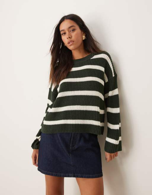 JDY - Gestreepte trui in donkergroen