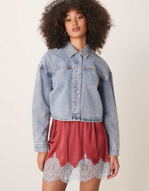 JDY - Lichtgewicht cropped denim jack met studs in lichte wassing blauw