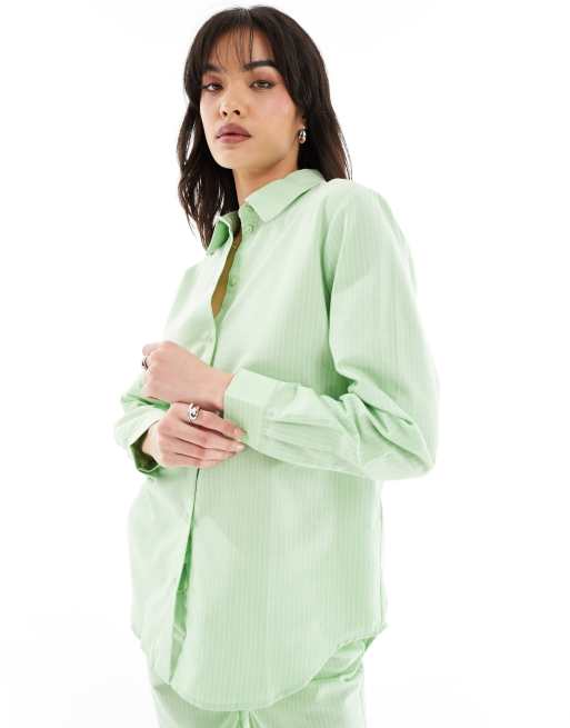JDY - Losvallend overhemd in lichtgroen met krijtstreep, deel van co-ord set