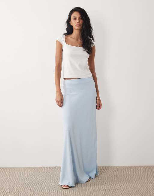 JDY - Satijnen maxi rok met A-lijn in lichtblauw
