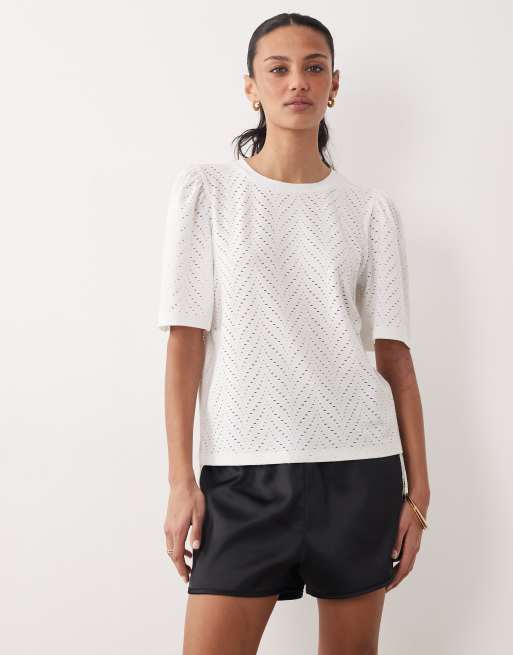 JDY - Top met broderie en lange mouwen in wit