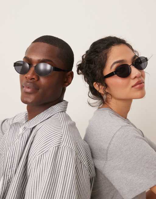Jeepers Peepers - Metalen ovale zonnebril in zwart