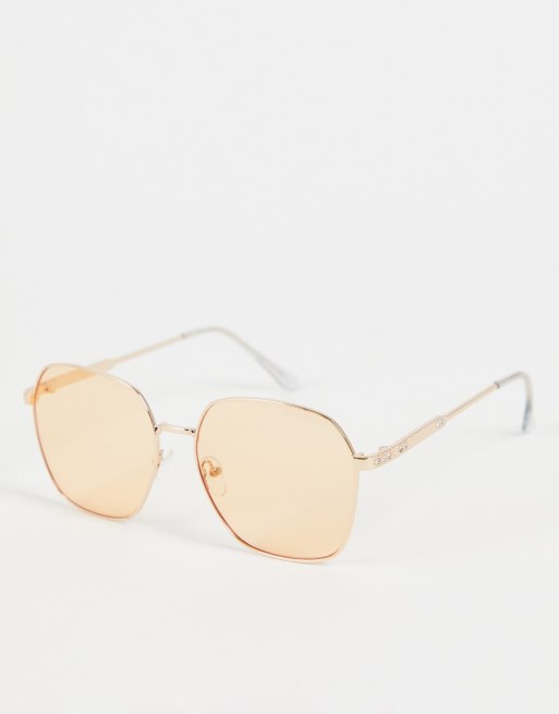 Jeepers Peepers - Oversized ronde zonnebril in goud met oranje glazen
