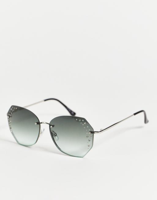 Jeepers Peepers - Ronde zonnebril met diamanten details in zilver