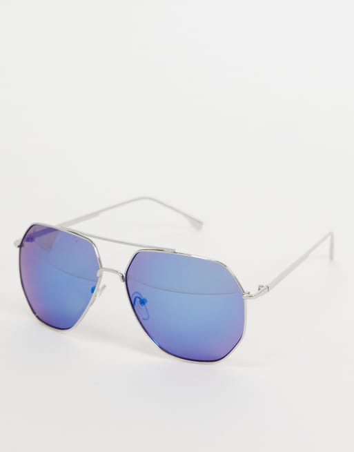 Jeepers Peepers - Vierkante dameszonnebril met blauwe glazen in zilverkleur