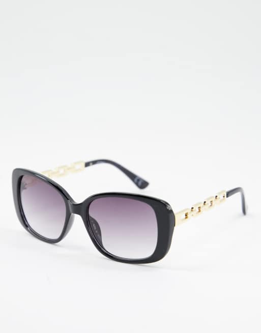 Jeepers Peepers - Vierkante dameszonnebril met ketting-pootjes in zwart