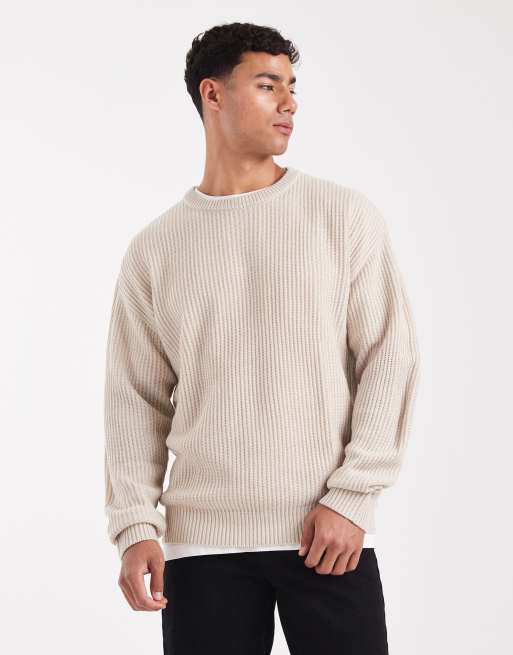 JJ Rebel - Oversized trui met textuur in beige