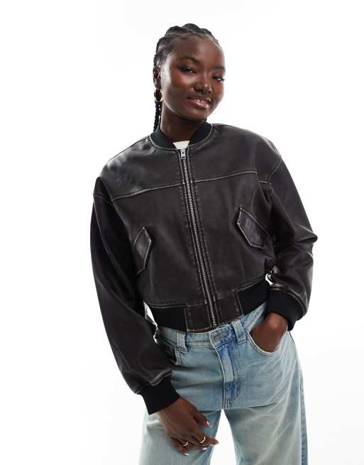 JJXX - Bomberjack van imitatieleer in zwart met wassing