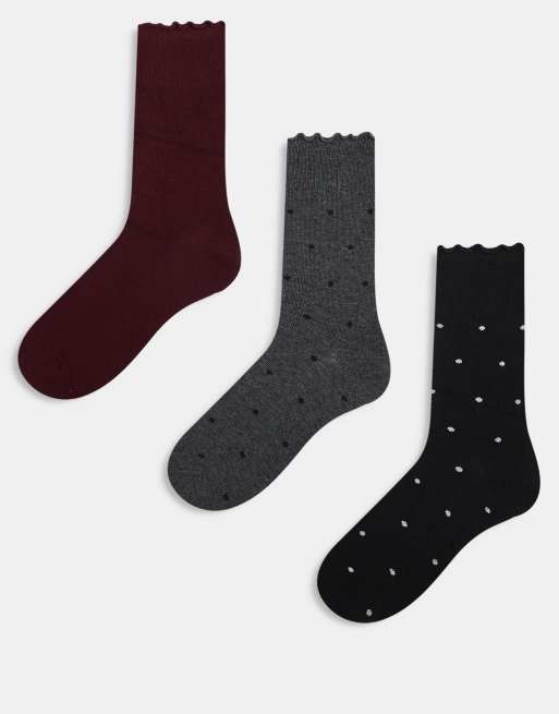 JJXX - Set van 3 paar sokken met polkadots in zwart, grijs en bordeauxrood
