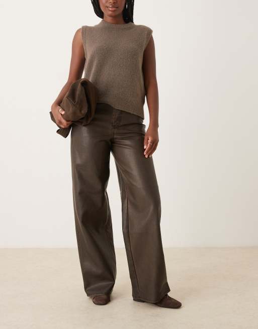 JJXX - Tokyo - Broek van imitatieleer met wijde pijpen in bruin met wassing