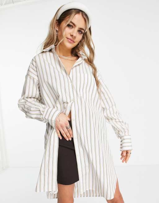JXX - Oversized gestreept overhemd in wit en beige