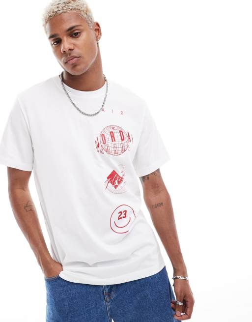 Jordan - T-shirt met gestapeld logo in wit en rood
