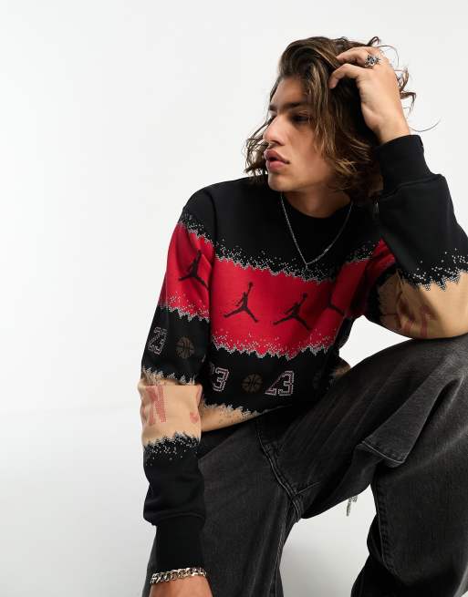 Jordan - Uniseks kersttrui met ronde hals in rood, lichtbruin en zwart