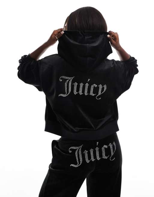 Juicy Couture - Ruimvallende hoodie van velours met rits in zwart, exclusief bij ASOS