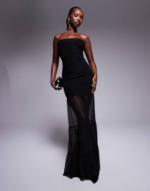 Kaiia - Exclusive - Maxi bandeau-jurk van gelaagde gladde stof met mesh zoom in zwart