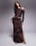 Kaiia - Exclusives - Co-ord set van crop top met textuur, bloemenprint, blote schouder en lange mouwen en maxi-rok in chocoladebruin