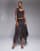 Kaiia - Exclusives - Co-ord set van top met gedrapeerde halslijn, blote schouder en sjaal en gelaagde maxirok met stippen in bruin en blauw