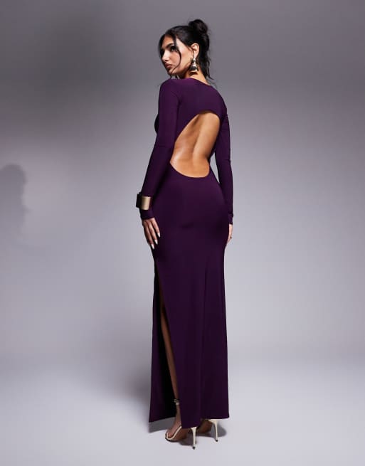 Kaiia - Exclusives - Maxi-jurk van gladde dubbellaagse stof met lange mouwen, open achterkant en zijsplit in paars