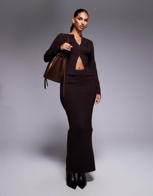 Kaiia - Gebreide maxi-rok met stroken in bruin, deel van co-ord set