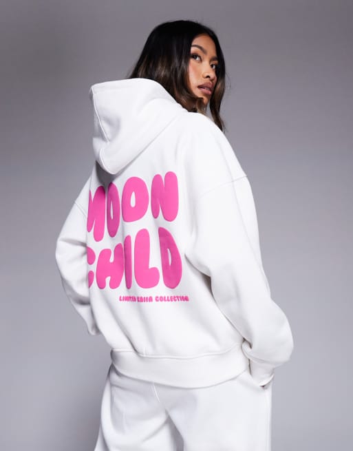 Kaiia - Hoodie van katoenmix met golvende logoprint op de achterkant in wit en roze, deel van co-ord set