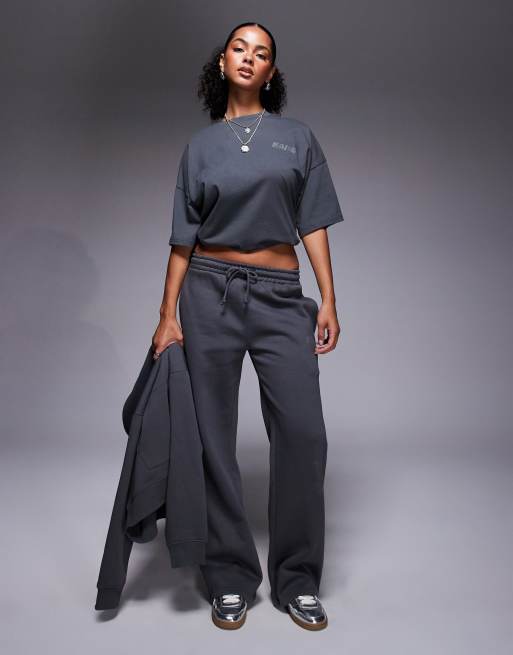 Kaiia - Joggingbroek met logo van siersteentjes en wijde pijpen in donkergrijs, deel van co-ord set