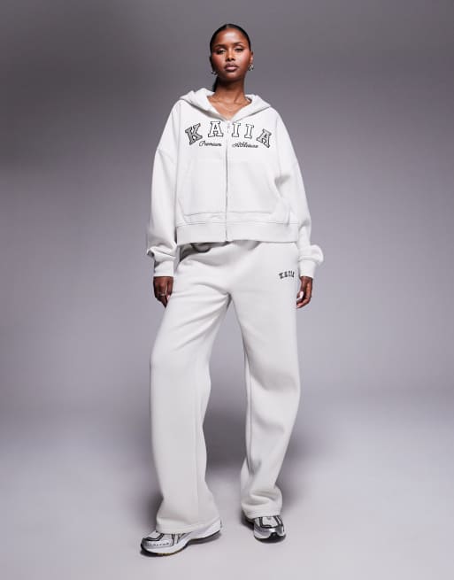 Kaiia - Katoenrijke joggingbroek met wijde pijpen en geborduurd logo in lichtgrijs, deel van co-ord sets