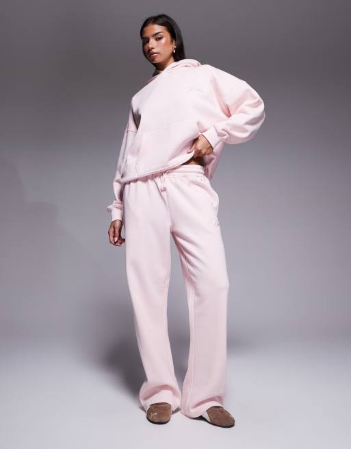 Kaiia - Katoenrijke joggingbroek met wijde pijpen en logo in aardbeienroze, deel van co-ord set