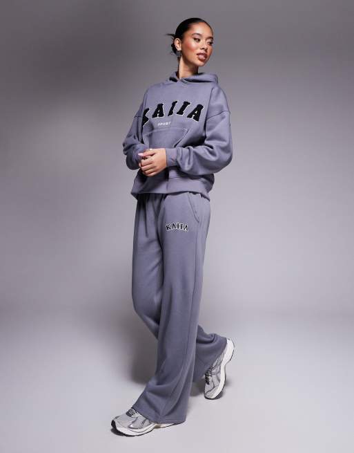 Kaiia - Katoenrijke joggingbroek met wijde pijpen en logo in grijs, deel van co-ord set