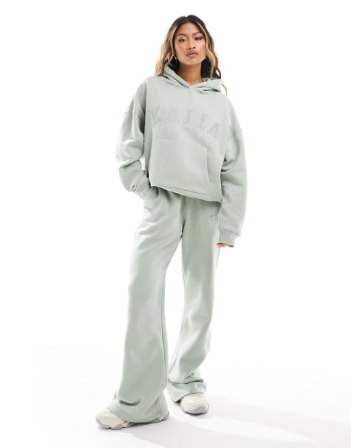 Kaiia ribbed oversized logo hoodie and jogger co-ord in sage green
