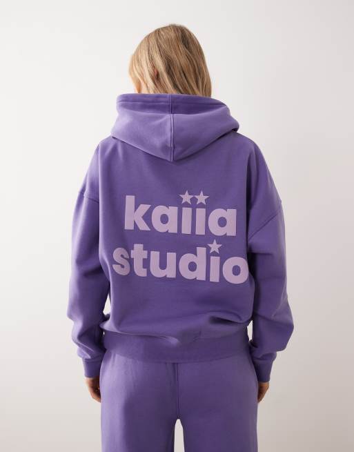 Kaiia - Studio - Katoenrijke oversized hoodie met sterrenlogo in paars en lila, deel van co-ord set