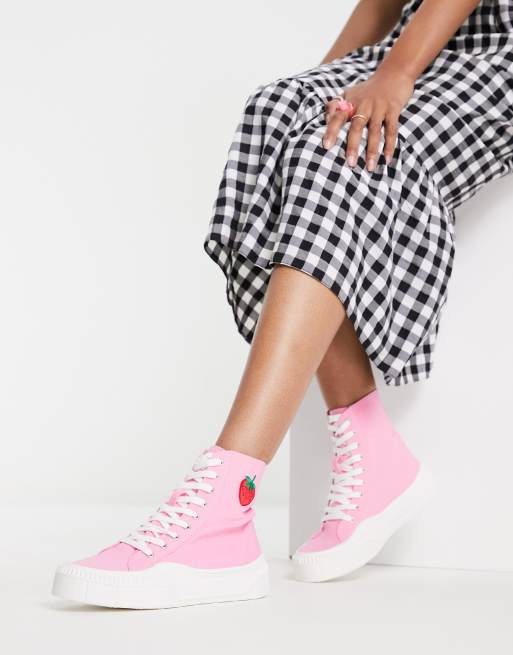 Kaltur - Hoge sneakers van canvas met aardbei in roze